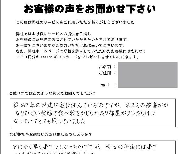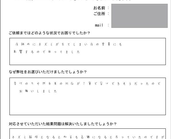 - 工事終了後、万が一のクレームが生じた場合は即座に対応。